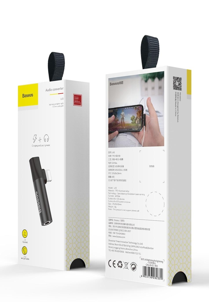 Bộ chia chuyển đổi âm thanh Baseus L43 2 trong 1 Lightning ra cổng tai nghe 3.5 mm và cổng sạc cho iphone 7,8, iphone X, iphone XS Max( Vừa sạc vừa nghe nhạc)