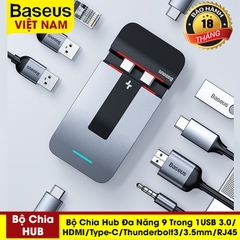 Bộ chia Hub đa năng Baseus Armor Age Type-C Bracket Multifunctional Hub Adapter 9in1 3USB3.0 / Type-C / HDMI/ Jack 3.5mm / RJ45 / 2Thunderbolt3 cho MacBook Pro Air