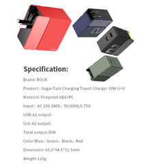 - Product:Sugar Fast Charging Travel Charger 30W U+U