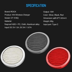 Đế sạc nhanh không dây Rock W4 Quick Wireless Charger DT-518Q công suất 10W cho Iphone XR XS Max 8 Plus Samsung Galaxy S9 S8 Plus Note 8 9