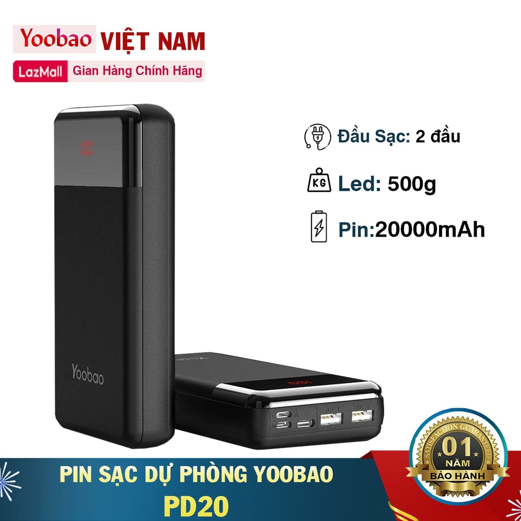 Pin sạc dự phòng Yoobao PD20 20000mAh PD3.0 (PPS) hiển thị phần trăm pin hỗ trợ sạc nhanh - Hàng chính hãng